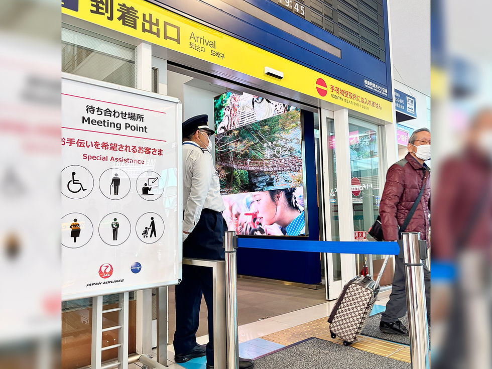 阿波おどり空港の手荷物受取所の出口に、横幅1.5×高さ2.5mのLEDビジョンを取り付けさせていただきました。